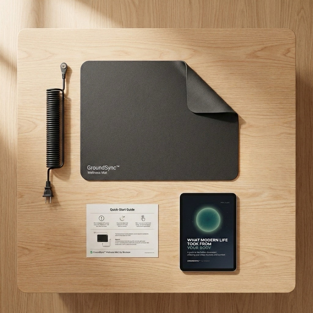 Your body is an electrical system — your heart, brain, and muscles all run on electrical signals. The Earth's surface carries a natural negative charge. When you make direct contact with it (or use a conductive mat connected to a grounded outlet), gentle electron transfer may occur. GroundSync™ brings that connection indoors through the ground port of your outlet — no live electricity involved.
