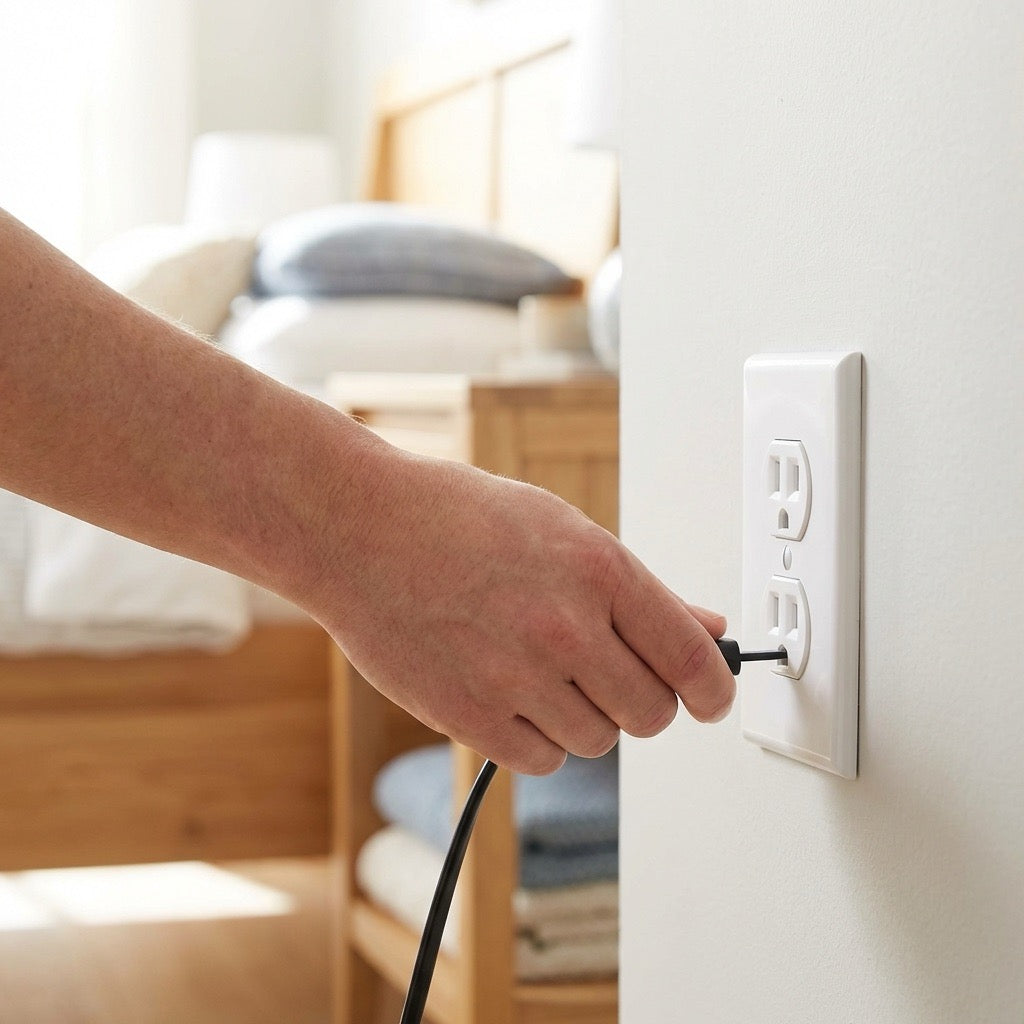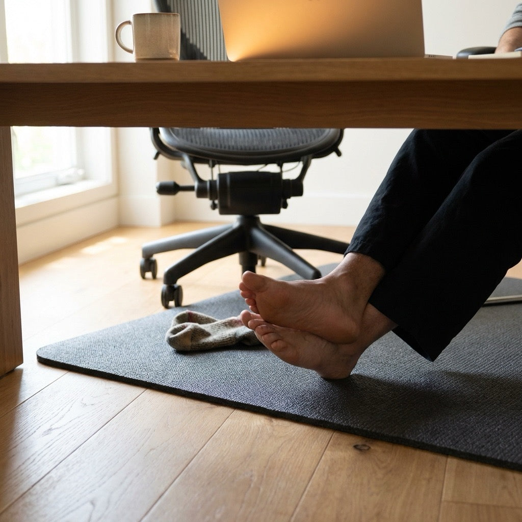 Place the mat under your feet at your desk, or lay it across your bed where your skin makes contact. Plug the included grounding cord into any grounded outlet. That's it. No setup, no buttons, no maintenance. Many customers use it all night while sleeping.